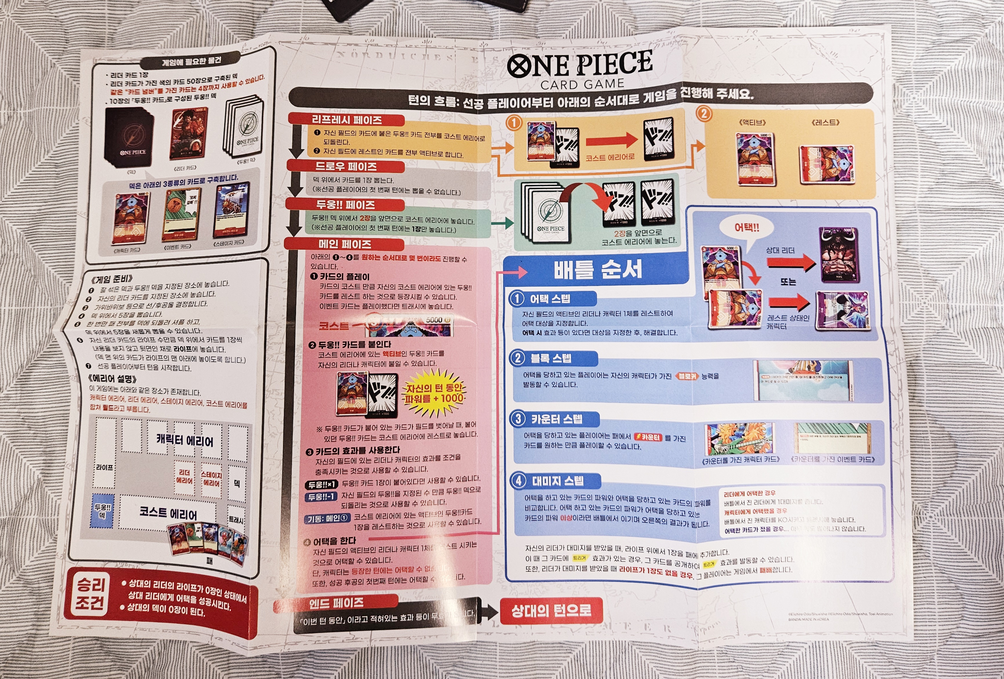 원피스 카드게임 한글판이 출시되었습니다. 현재 스타트덱만 나온 상태인데, 정말 반가운 소식이 아닐 수 없습니다. 일본에서의 큰 인기로 게임성은 이미 인정받았는데, 이제 한글판이 발매됨으로써 편하게 즐길 수 있게 되었습니다.