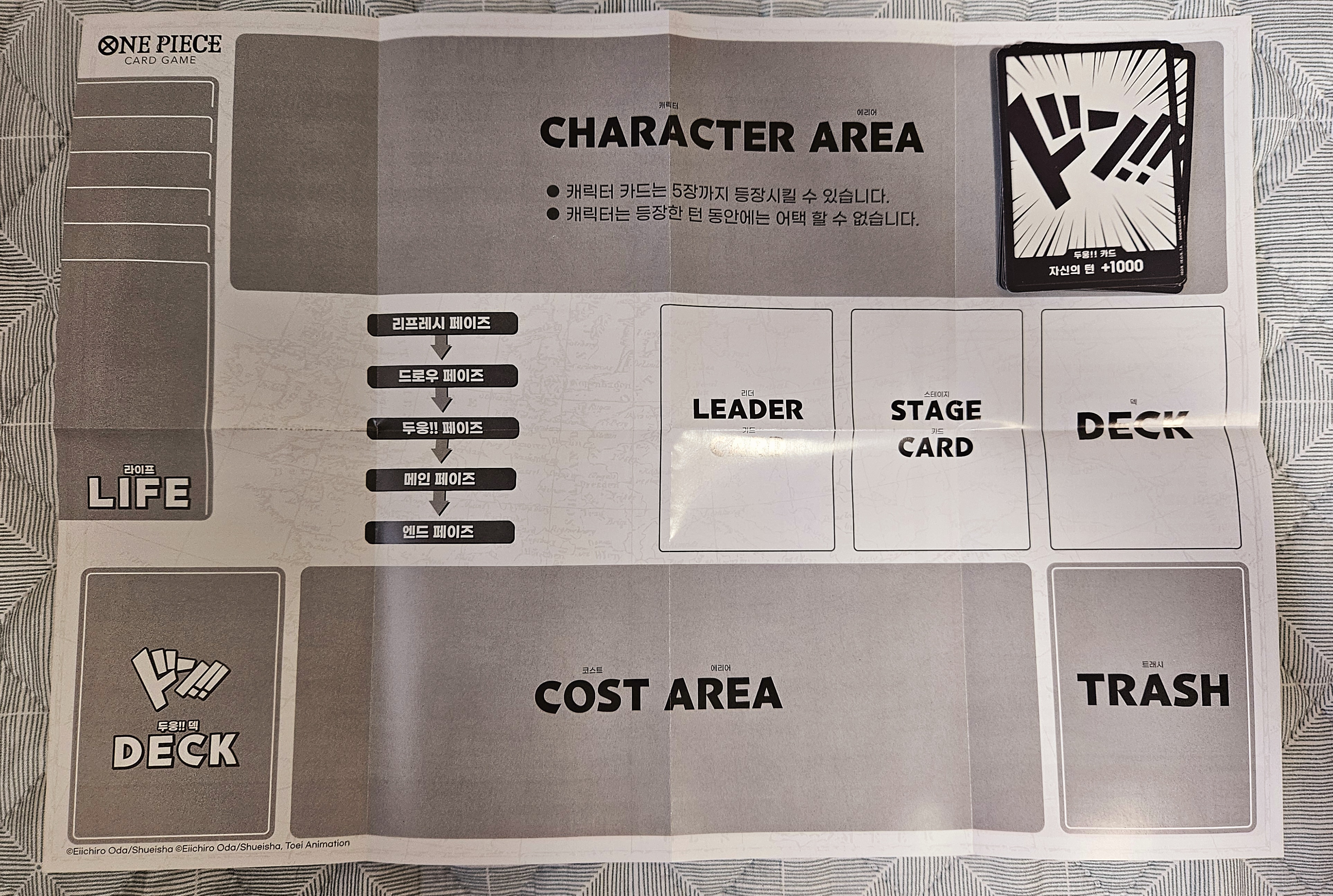 카드 외에는 다음과 같이 설명서 겸 매트로 사용할 수 있는 종이가 포함되어 있습니다.