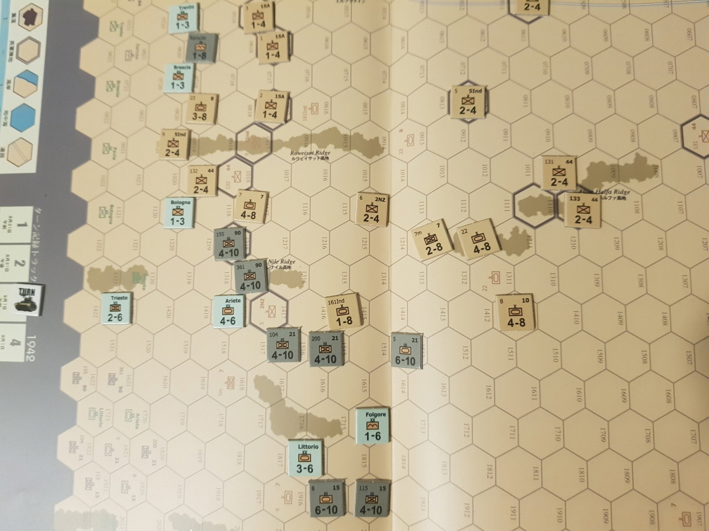 테스트 플레이 결과, 마지막 턴에 가까스로 독일군이 알람 엘 할파 능선의 영국군 헥스 중 1곳을 점령하여 승리 조건을 달성했습니다. 역사적으로는 1942년 8월 30일부터 롬멜이 지휘하는 독일군이 몽고메리의 영국군을 공격했지만 알람 엘 할파 능선의 점령에 실패했고, 이후 1942년 10월 23일부터 시작된 영국군의 공세에 의하여 독일군은 후퇴하게 되었다고 합니다.