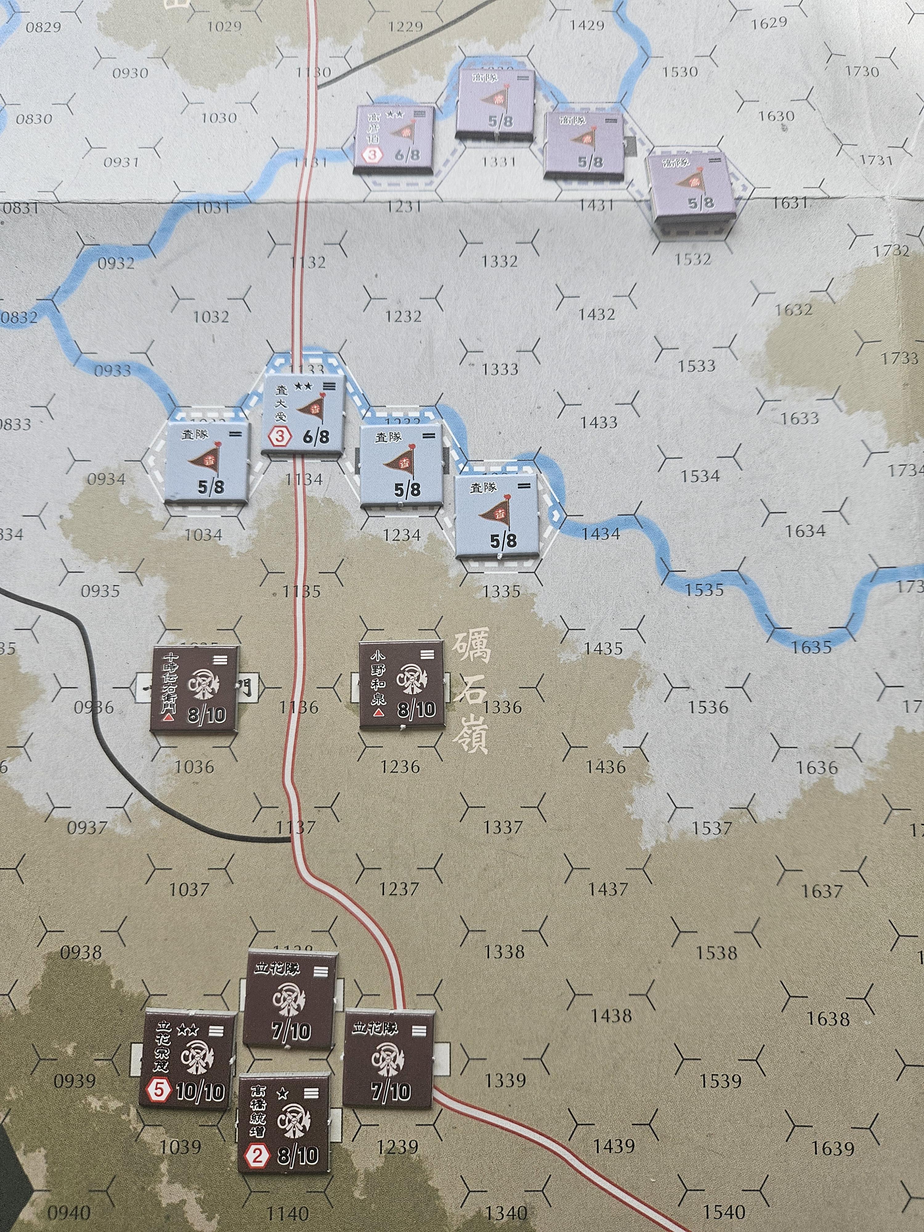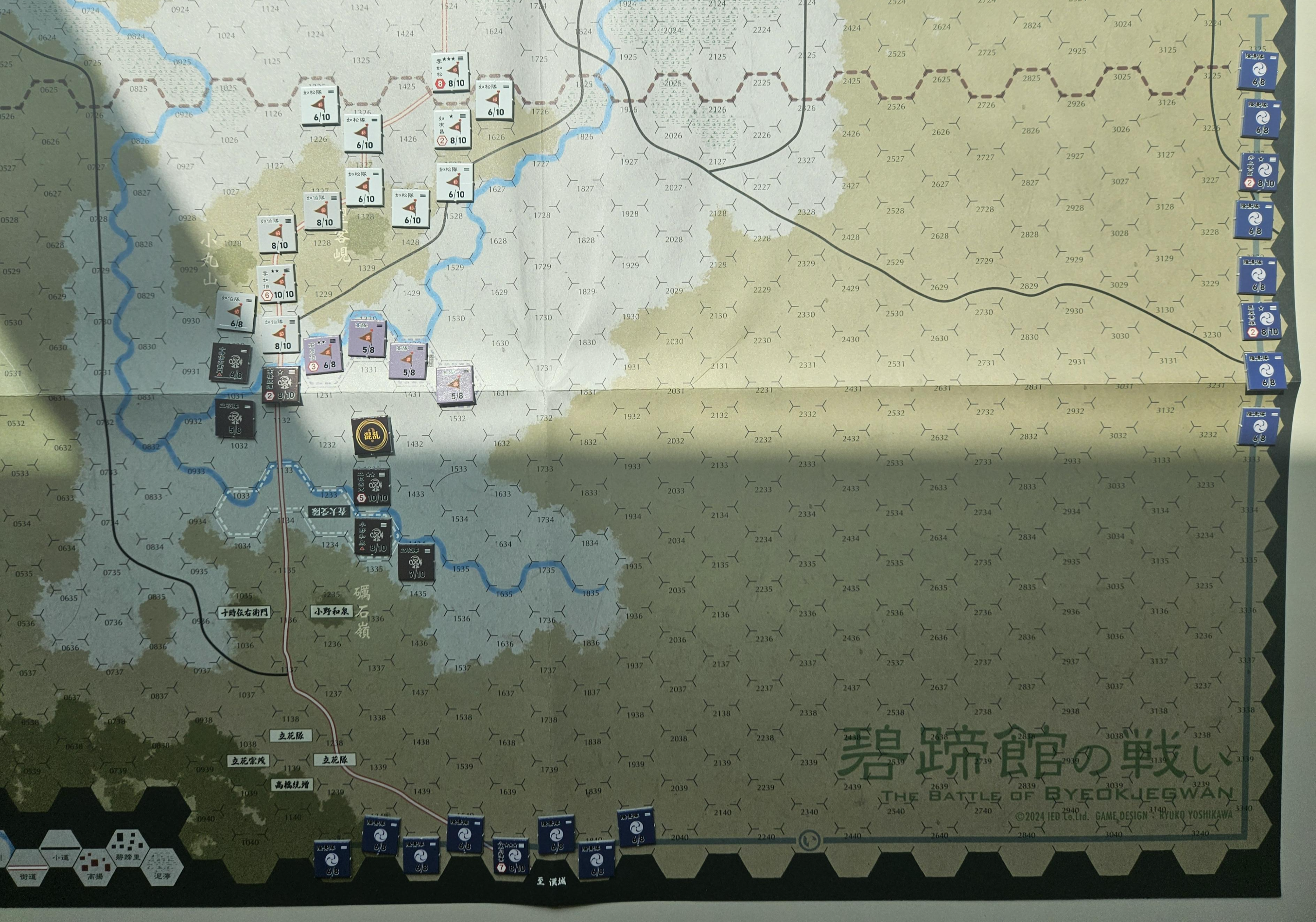 그러나 명군은 구릉지에서의 소비 이동력이 3으로서 일본군의 2보다 높다는 점 등의 난점으로 인하여 가도를 통해 신속하게 남하하긴 하였으나 곧바로 일본군을 포위할 수 있을 정도의 위치에 도달하지는 못했습니다.