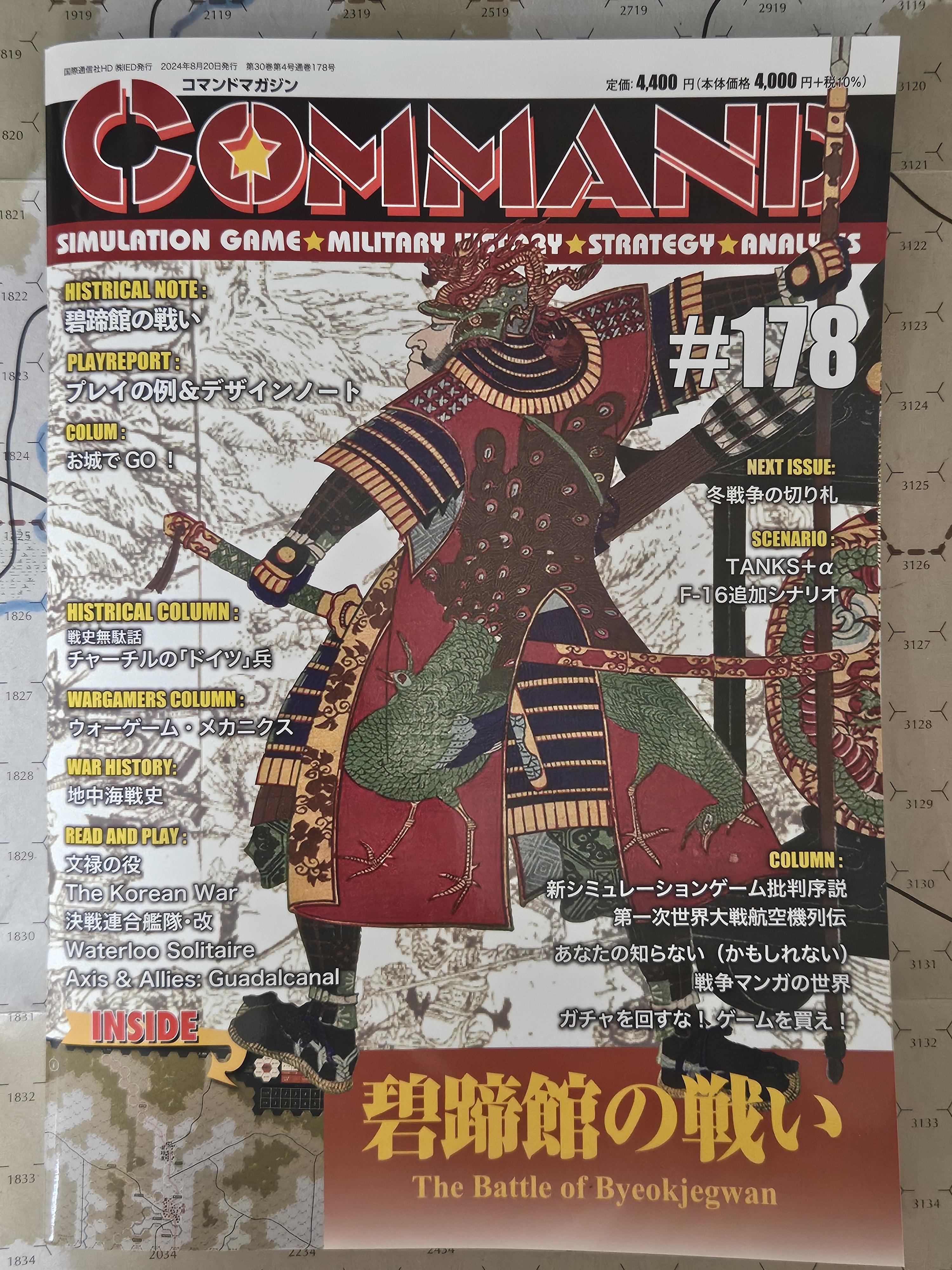 그래서 이번에 일본 워게임 잡지 커맨드매거진 178호 부록 게임의 배경이 임진왜란 "벽제관의 전투"라는 소식에 놀랄 수밖에 없었습니다. 그리고 이처럼 마이너한 배경을 다룬 게임이 일본에서 제작되었다는 점으로 인하여 자극을 받게 되었습니다.