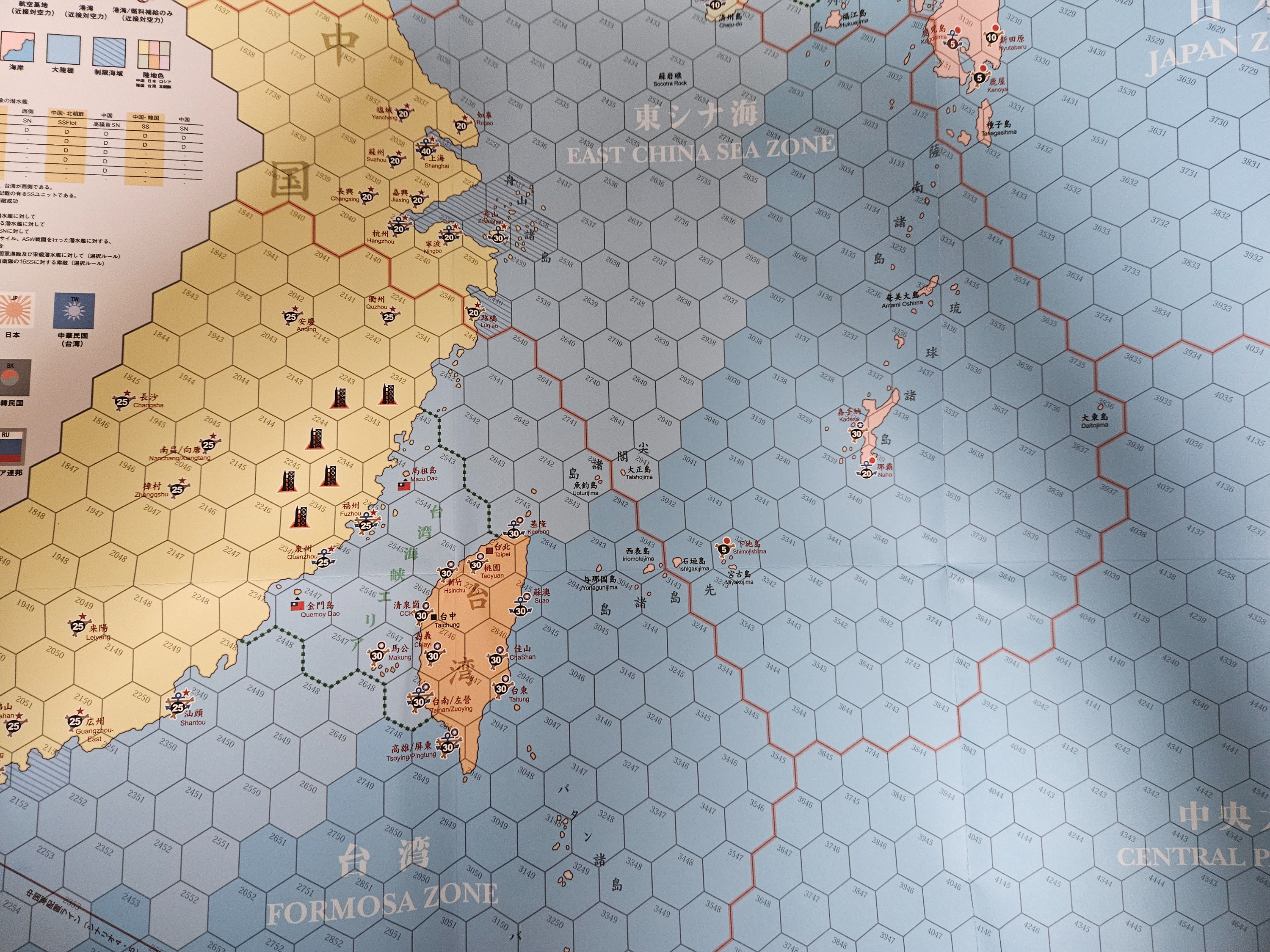 지도는 풀사이즈 맵 2장인데, 남쪽 지도에서는 대만이 가장 핵심적인 지역이라 할 수 있겠다. 중국의 대만 침공 시 미국-대만이 연합하는 시나리오와, 미국-대만-일본이 한 편이 되는 시나리오가 존재한다.