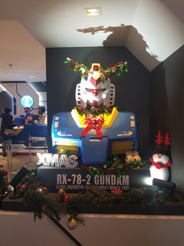 평소와는 다르게 연말 분위기와 크리스마스를 표현한 건담들의 모습도 재미있었습니다. 아이들과 함께 가면 여기저기 포토존으로 쓸 만한 장소가 많은 것 같아요. 아무래도 연말연시에만 이렇게 보기 드문 장식이 되어 있는 것이겠죠?