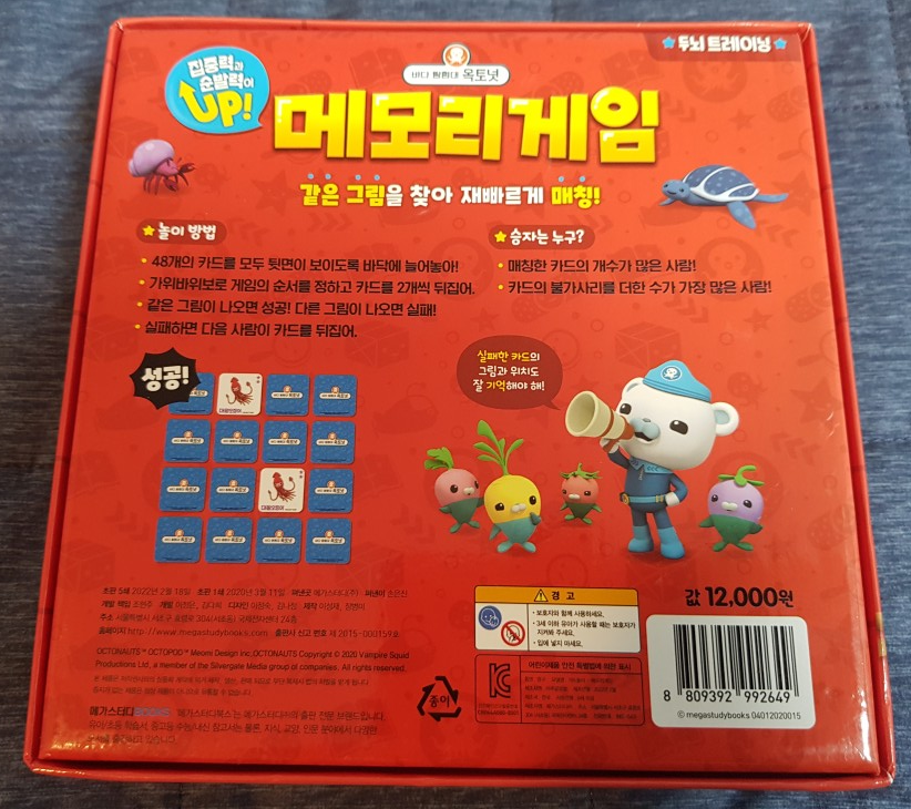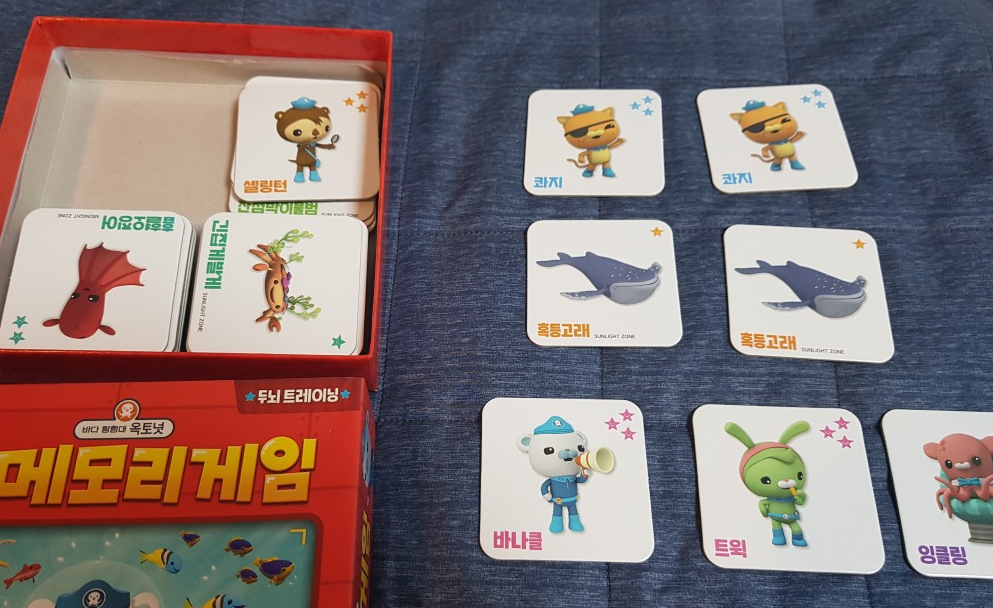 만3세 또는 만4세 어린이들이 재미있게 가지고 놀 수 있는 보드게임, '바다탐험대 옥토넛 메모리게임'을 소개합니다. 사실 보드게임이라고 불러도 될 것인지 의문이 들 정도로 간단한 게임입니다.