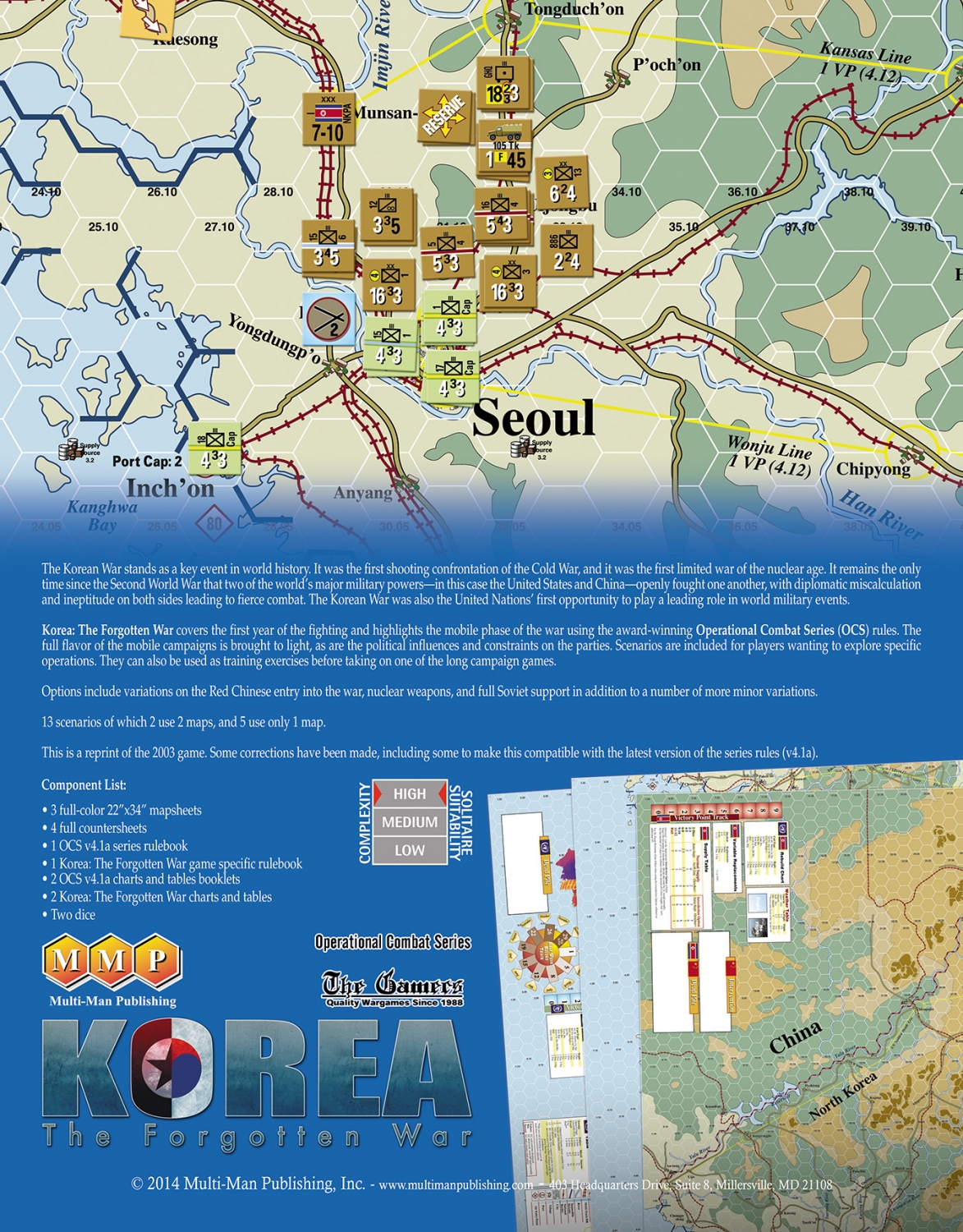 MMP는 다양한 시리즈의 워게임을 발매하고 있는데, 한국에서는 그 중에서도 작전급 워게임인 OCS(Operational Comat Series) 시리즈가 유명한 것 같습니다. 아무래도 해당 시리즈 중 한국전쟁을 다룬 Korea : The Forgotten War가 존재하기 때문일 것입니다. 그 밖에도 심플한 룰 덕분에 접근성이 뛰어나다는 SCS(Standard Combat Series) 시리즈가 있고, 대대급 워게임으로서 더 디테일하고 복잡하다고 보이는 BCS(Battalion Combat Series) 시리즈도 지속적으로 출시되고 있습니다.