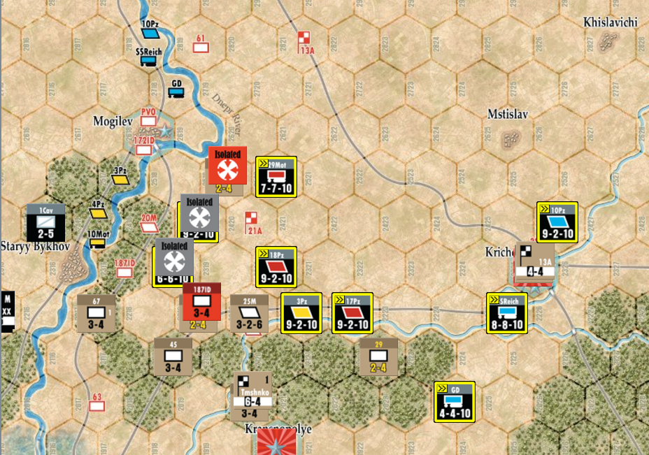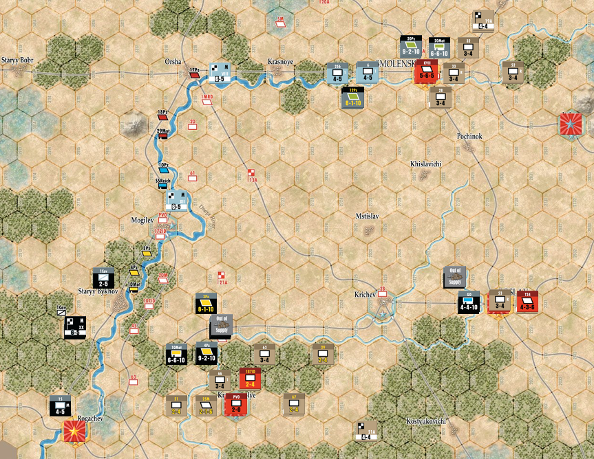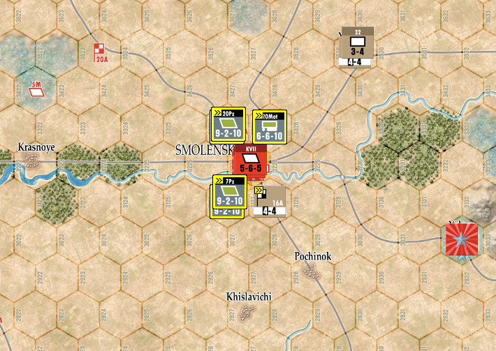 스몰렌스크에 위치한 소련군 KV-2유닛은 적 ZOC에 의하여 둘러싸였지만, 16A HQ가 있어서 간신히 고립 판정을 면했습니다.