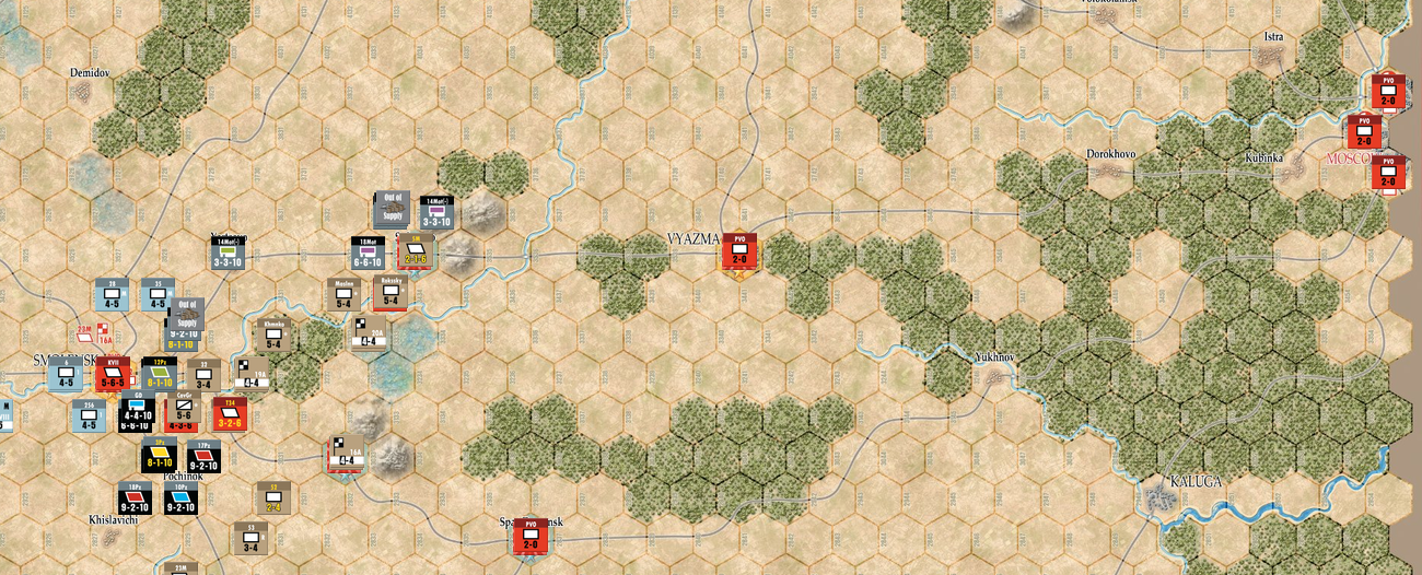 이쯤에서 솔로플레이 후기를 마칩니다. 아무래도 독일의 진격은 현재 전선에서 멈출 것으로 보이기 때문입니다. 아무래도 6턴쯤에 독일군이 적어도 Vyazma까지는 진출을 해야 모스크바를 노려볼 수 있을 것 같습니다.