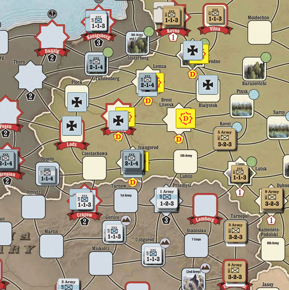 - AP : 2OP 사용, Batum의 러시아 군단이 의무적 공격 수행, Kharkov의 2개 군을 Dubno로 이동