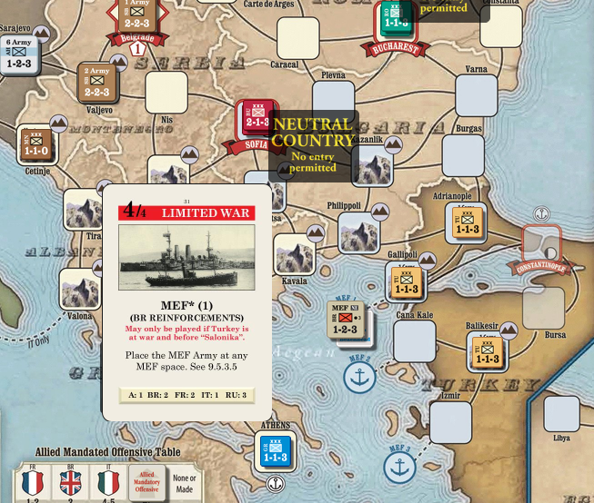 * 불가리아 군단은 공격력 2로써 근동 지역을 지원하거나 급할 때 서부전선 방어에 요긴하게 사용할 수 있습니다.