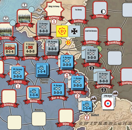 - CP : SR, 독일 군단을 Ivangorod, Breslau 배치, Brussels의 군단 1유닛을 Trent로 이동, BU군단을 Rize로 이동