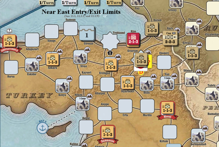 -CP: SR 사용, 독일 군단 2유닛을 브뤼셀에 배치, 1유닛을 코벨에 배치, 불가리아 군단 1유닛을 Philippoli에서 Erzerum으로 이동