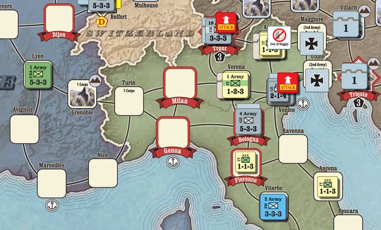 17턴, 독일군의 파상공세에 의하여 이탈리아 볼로냐(Bologna)까지 함락되자, 전의를 상실한 AP는 항복합니다.