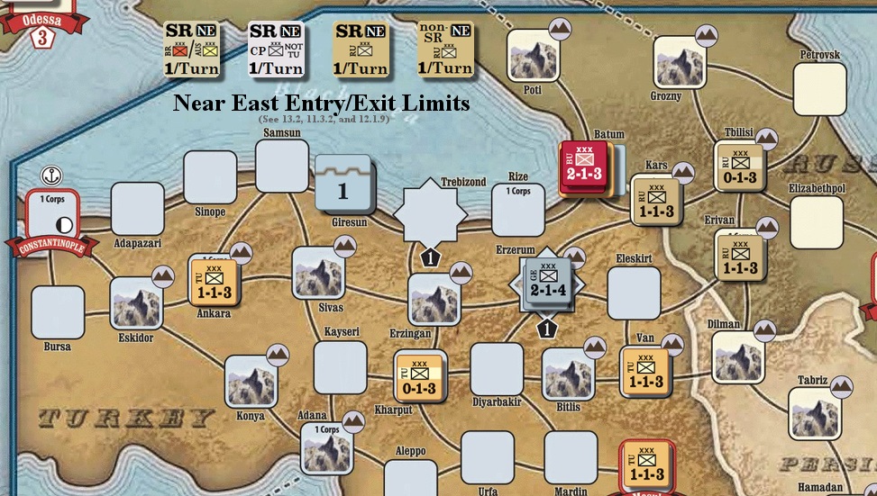 10턴, 근동에서 터키군과 독일군단의 공격에 의하여 Tbilish가 점령당했습니다. 이로써 CP는 러시아의 Baku 지역 승점을 얻게 되었고, 이는 이후 Tsar takes command에 필요한 요건을 충족하는 데 큰 역할을 합니다. 바쿠 점령으로 인하여 CP는 Kovno와 Vilna까지 가지 않고 Lodz와 Warsaw만 점령해도 이벤트를 플레이할 수 있게 된 것입니다.
